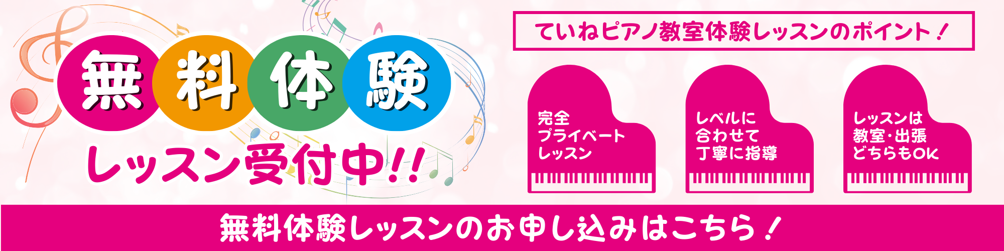 「ていねピアノ教室」では、初心者から経験者まで、ひとりひとりの個性に合わせて上達をサポートします。