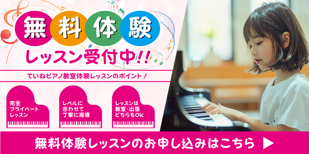「ていねピアノ教室」では、小さなお子さんから大人までを対象に、現役で演奏活動を続けるピアニストが本格的なピアノレッスンを行っています。